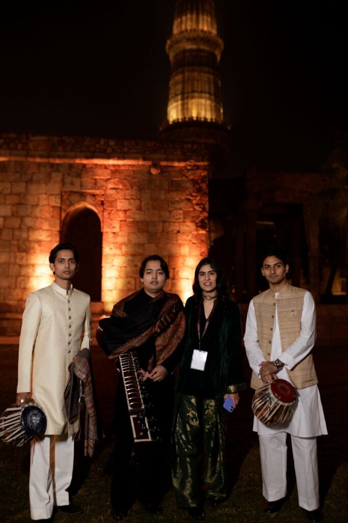 Curated by Simar Malhotra, Founder of Inkpot India, the evening featured a sitar performance by Mehtab Ali Niazi and his ensemble. The repertoire was developed specifically for the monument, responding to its scale, acoustics and spatial character while remaining grounded in classical tradition. Author and cultural historian Eric Chopra, Founder of Itihasology, opened the program with brief reflections on the Qutub complex and the historical significance of the Mehrauli region.