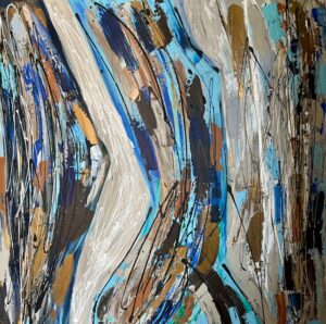 Not impervious to personal loss and tragedies, Artist Stéphanie shared,As my work continues to evolve, I pay tribute to my mother who passed in 2023 with the introduction of bright colours, her colours. Lately, the shapes my paths take are rounder and want to burst forth from my canvas like fireworks; a way to tell myself a new story; a way of traveling in the visible and invisible world. What is our final destination?”