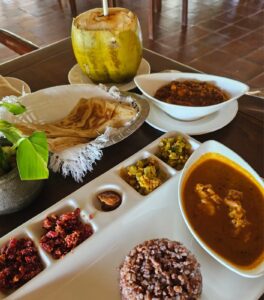 For me there were some less obvious aspects that impressed even more. The water harvesting measures, planned and made about two decades ago, are a testament to CGH founder Jose Dominic’s vision, most visible today in the shape of rainwater harvesting water bodies. The area is water deficient and the property is self-sufficient in its water needs, not impacting the water requirement of the neighboring village. The extensive use of local laterite in all the structures is remarkable, making the surface breathe well, and aesthetic as well. The annual replacement of thatched roofs with coconut fronds provides employment for threatened skills.