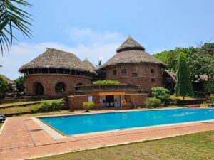 The cuisine is guaranteed to benefit your body and can be quite flavourful. For regular guests, there’s even paneer etc. Seafood is particularly popular. Each day, food is served several times in the beautiful Cocum restaurant. Just entering this vast dome – yes one the three main domes visible in the pics – is a wow moment – it’s thatched room tapering to a point high above, while a row of open spaces offer tantalising views of all around. There is also the beachfront Anamaya restaurant. With its shack-like ambience, the darkness lightly pierced with wavering candlelight, swaying int the breeze, it’s an enchanting look. Add to that the melodies of the sea – from gently lapping splashes to roaring waves when the sea wants to assert its attitude, this is yet another unforgettable experience.