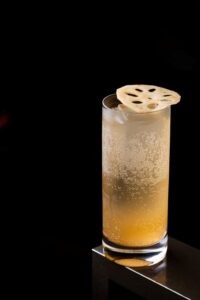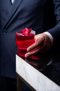 Shokunin, inspired by disco’s flamboyant rhythm. Gin and Campari lay down the groove, while cacao nibs, coffee, and beetroot bring indulgent depth, creating what the team calls “a chocolaty, tropical cocktail with a smooth finish.”