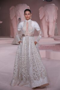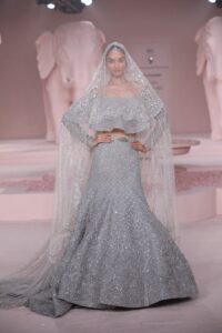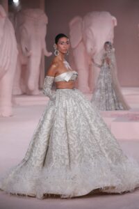 Western silhouettes, tulle veils, cloaks, gowns, lehengas, each garment in the collection a testament to cultural exchange and the invaluable lessons they have learned from the past. The meticulous workmanship of the skilled artisans remained the focal point.