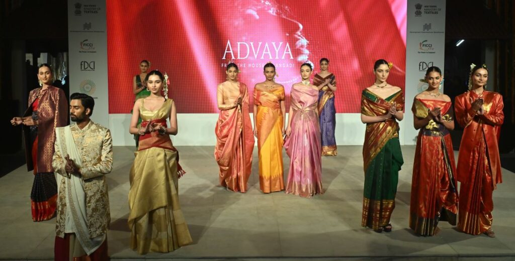 As International Saree Day approached, FICCI FLO and the Fashion Design Council of India (FDCI), along with the Ministry of Textiles, hosted a memorable evening titled Woven Whispers – A Journey of Craft to Commerce at the National Crafts Museum, Pragati Maidan, on December 14, 2025.