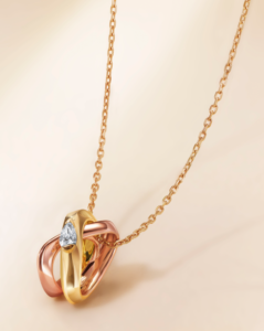 Zoya’s ‘My Embrace’ features 26 trademarked designs; sleek bangles, bracelets, pendants, high gloss rings and earring hoops, made in a combination of platinum and rose gold, reflect simplicity in design yet are significant in their craftsmanship. The emotional inspiration of a self-embrace is translated with rich sculptural dynamism into a continuous flow with a harmonious integration of components.