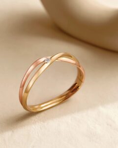 My Embrace Bangle : 1 Diamond: An iconic symbol of self acceptance. Simple, yet significant, My Embrace celebrates all of you in your entirety. A seamless union of two precious metals come together, effortlessly translating the happiness when you embrace yourself just as you are.