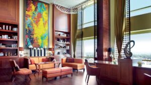 On level five, above The Lantern is located the swimming pool, all blue and cosy, with secluded cabanas. And there is The Pool Bar. They do serve poolside kind of cuisines like salads, sandwiches, and some great cocktails. Nice place to sit out and sip exotic cocktails, even if one doesn’t want to dip into the pool. The Ritz Carlton has made a grand ritual of the Afternoon Tea service, which is maintained at all over the world. Head out to The Lobby Lounge on the third floor here to sip your tea and admire the art works.