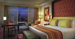 The Ritz Carlton rooms are all that they should be – luxurious, comfortable His n’ Hers washbasins, art, a Krups Nespresso machine, Feretti linen, remote controlled lighting and screen, Asprey London toiletries, fruits and cookies and chocolates, electronic alarm clocks, complimentary wifi, an I-Pad was the electronic concierge for providing all data about the hotel, and make requests. Personalised gold embossed stationary is a sure hit with the guests.