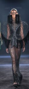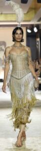 Amit Aggarwal’s collection was a masterful presentation of fashion that could earn him the title of India’s Schiaparelli. Metallic corded trims, 3D embellishments and varying volumes for the silhouettes brought an arresting touch to the apparel. The intriguing addition of facial/head ornaments that encircled the head and twinkled tantalizingly added a creative dimension to the latest collection. While many may say the ensembles were not totally wearable, museums will want to display them and the daring and not-so-faint of heart will long to wear them.
