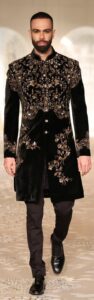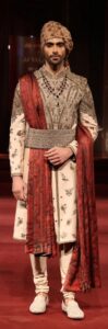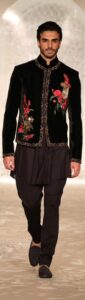 Shantnu and Nikhil concentrated on Indian bridal men’s wear with their “Metropolis” collection. It was a sleek, sharply, tailored look at masculine couture with a few women’s wear sprinkling. From the stylish suits with ruffled necklines to modern sherwanis, cropped bandhgalas and tailored trousers, there was a fashion forward touch that will appeal to the modern male.