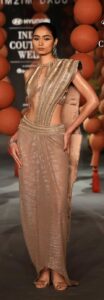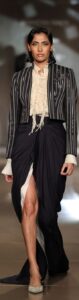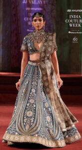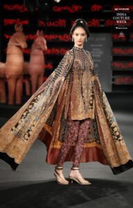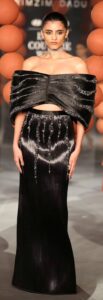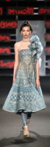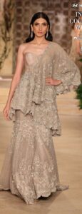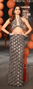 The brand’s favoured materials like steel, metallic wire and custom textiles were interlaced into garments and fabrics. The body con gowns, pencil skirts, draped sari/gowns, jackets, minis, lehengas and cholis brought a new fashion and style Grammer at the show.