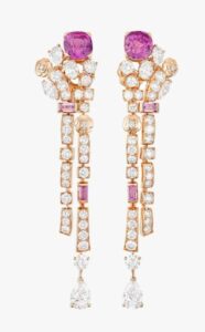 Elsewhere, the Tweed Céleste necklace combines yellow diamonds, sapphires and onyx in a palette taken straight from a stary night sky, while the Tweed Pétale earrings recreate the movement and fluidity of tweed in a camellia-inspired selection of diamonds, pink sapphires and rose gold.